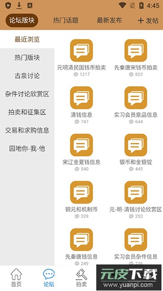 5. 关注拍卖信息板块,掌握文物钱币的拍卖动态。