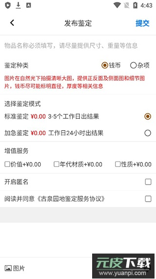 3. 提交鉴定请求并上传相关钱币信息与图片;