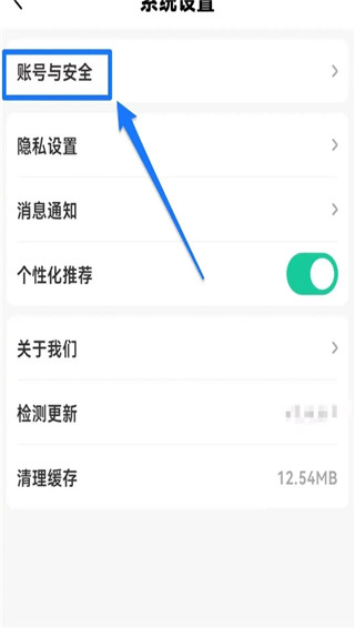 第三步,进入系统设置页面后,选择【账号与安全】功能;