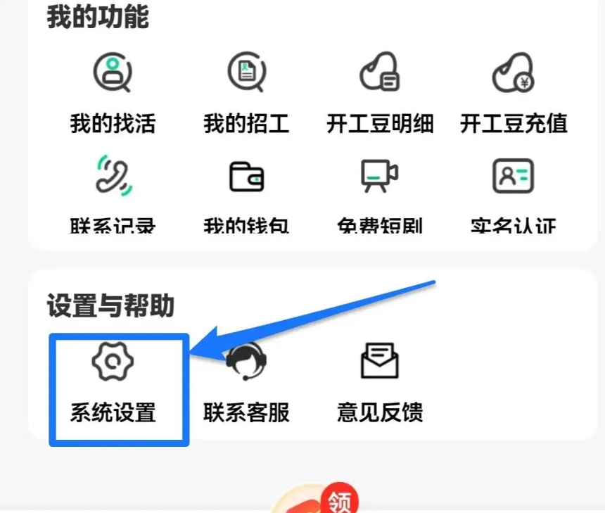 第二步,在我的页面中,点击【系统设置】选项;