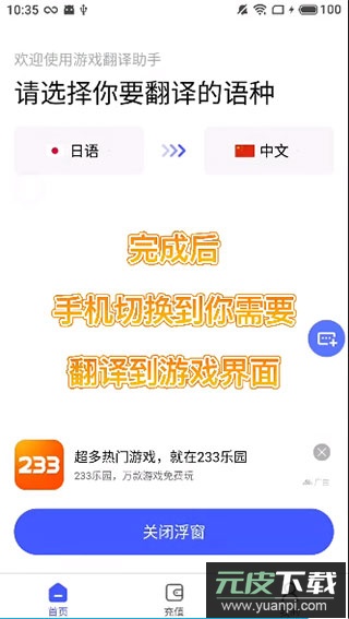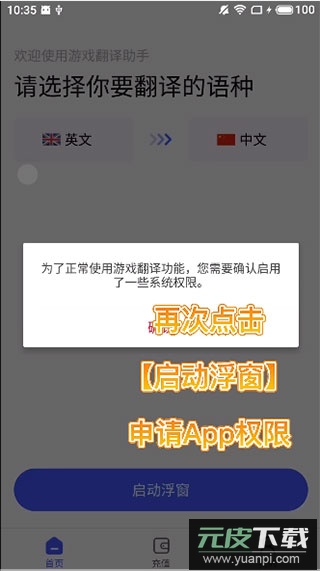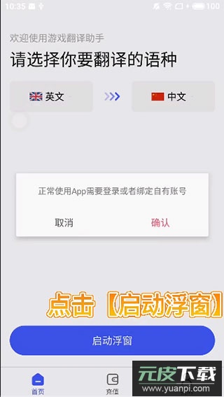 1、从本站下载游戏翻译助手App,安装后点击【启动浮窗】;