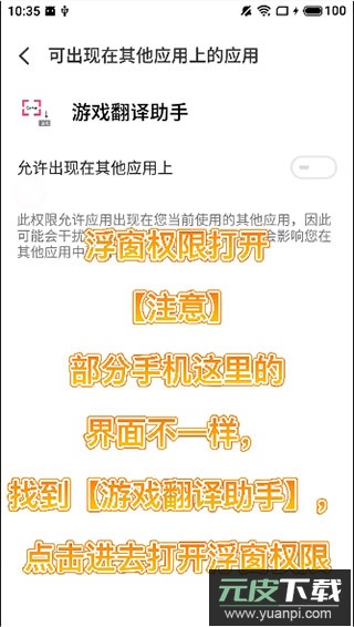 注意:部分手机此界面可能不同,请找到【游戏翻译助手】并进入打开浮窗权限;
