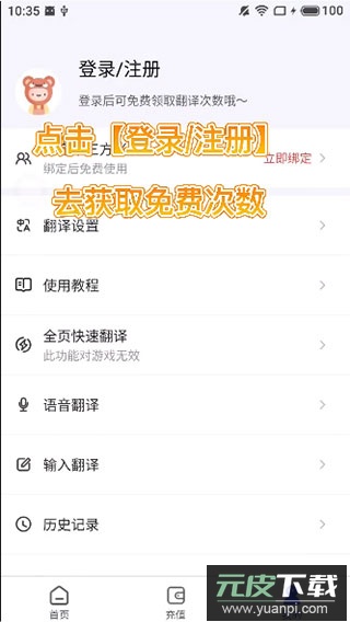 3、点击【登陆/注册】以获取免费使用次数;
