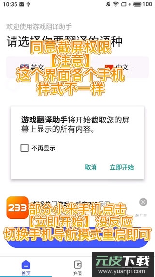 注意:此界面因手机型号而异,部分小米手机点击【立即开始】若无反应,可尝试切换手机导航模式后重启应用;