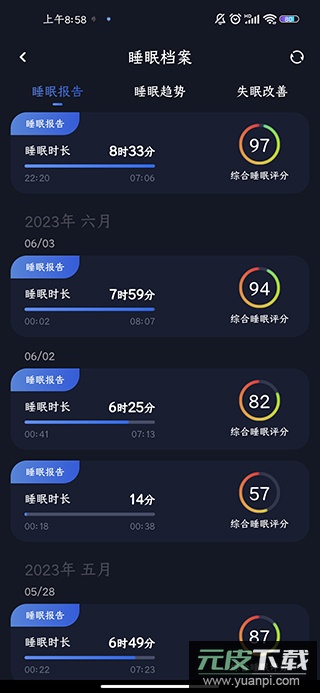 3、在睡眠报告列表中,点击想要查询的日期记录。