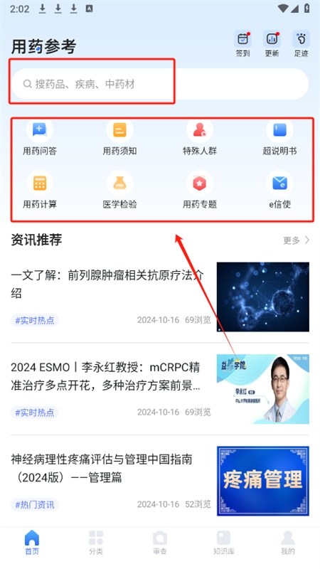 1、下载并完成用药参考app的安装,打开应用进入首页界面;