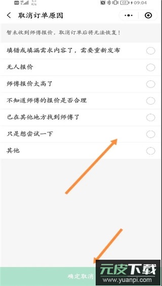 最后选择取消订单的具体原因,并确认取消操作即可。