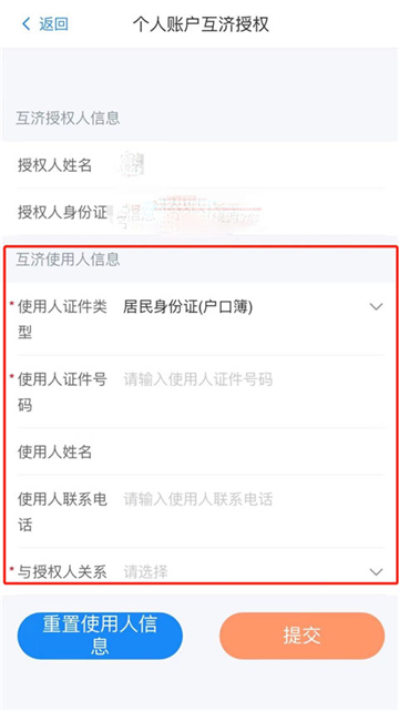 5、输入使用人的证件号码,可选填使用人手机号,选择与授权人关系确认无误后点击“提交”按钮进行绑定。