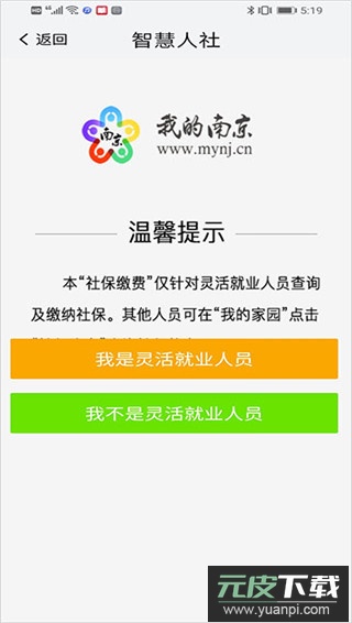 3、根据自身情况选择是否属于灵活就业人员,随后按页面指引完善信息并完成缴费;