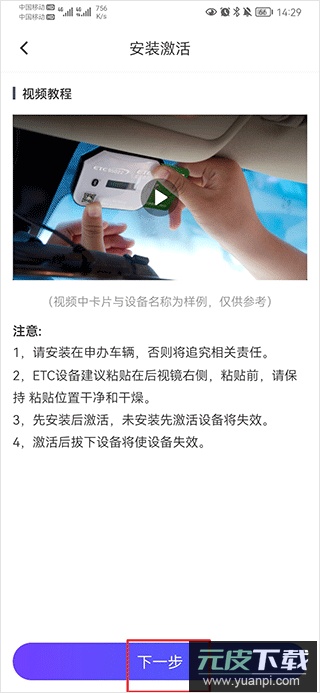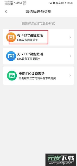 2、选择需要激活的设备类型,例如有卡ETC设备激活。