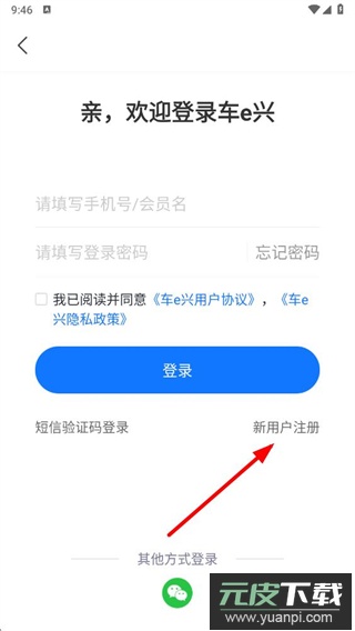 3、在登录页面选择“新用户注册”,进入手机号注册流程。