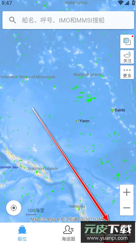 1、打开应用,在地图上找到待测海域或港口位置,适当缩小地图视野。
