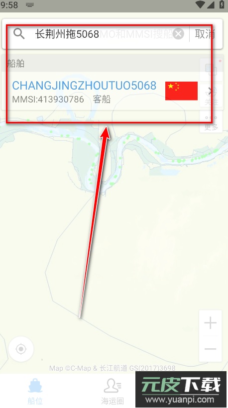 3.输入船舶识别代号进行搜索,在结果列表中点击目标船舶。