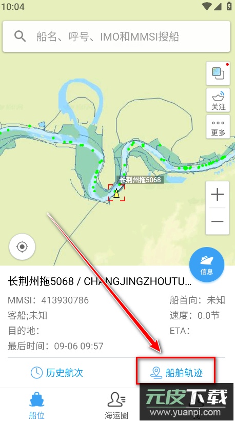 5.在详情页面点击“船舶轨迹”即可查看其历史航行路径。