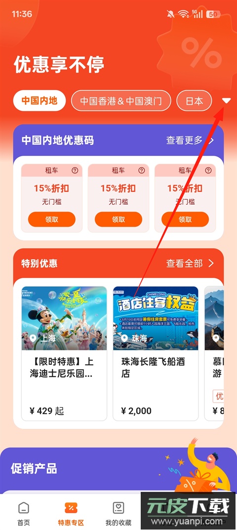 1、打开客路旅行应用,找到特惠专区并点击进入;