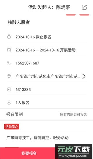 5、点击进入后,可以查看活动的报名截止时间、地点、联系方式、报名人数及活动内容介绍,点击“我要报名”即可参加。