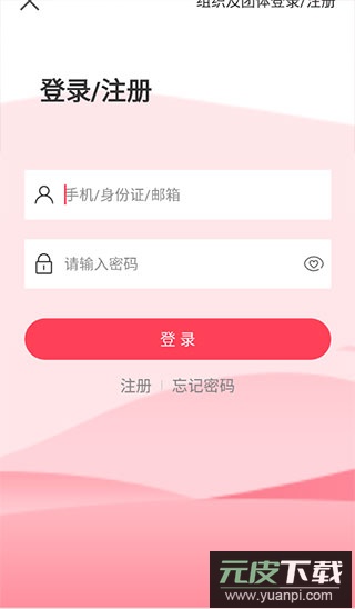 2、输入手机号或身份证号码及密码登录,首次使用请点击注册。