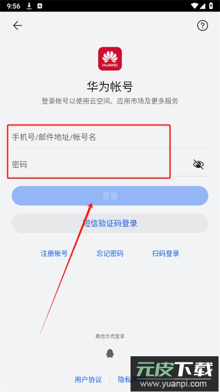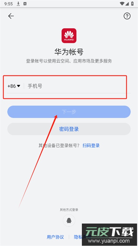 2、阅读并同意用户协议与隐私声明,进入登录页面。