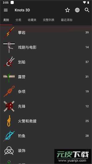2、在分类界面中可看到多种绳结类型,根据需求选择学习;