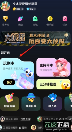 4、除剧本杀外,软件还推出了多样化的活动,例如你画我猜、狼人杀等,丰富了娱乐选择;互动区支持玩家自建语聊房间,便于自由交流与互动。