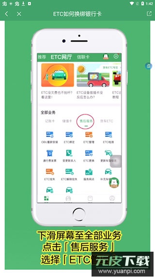 2、在ETC网厅页面找到全部业务入口,点击售后服务分类,选择其中的ETC管理选项;