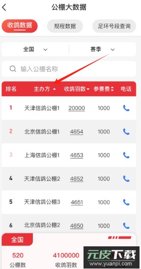 4、可随时查看各赛事主办方具体信息以及已收录的赛鸽羽数。