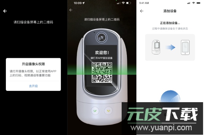 2、添加设备:进入主页后点击右上角“+”号,进入添加设备页面;根据页面提示选择摄像头类型。