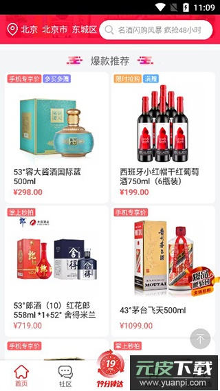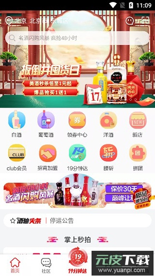 2.精选频道:销量排行榜、名品清仓、家乡美酒、老酒味道、红酒礼盒等多种选择一应俱全;