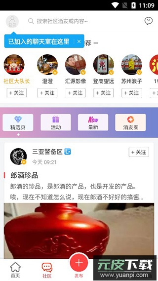 6、进入社区板块,能够看到用户分享的酒类图文动态,学习各类酒知识。