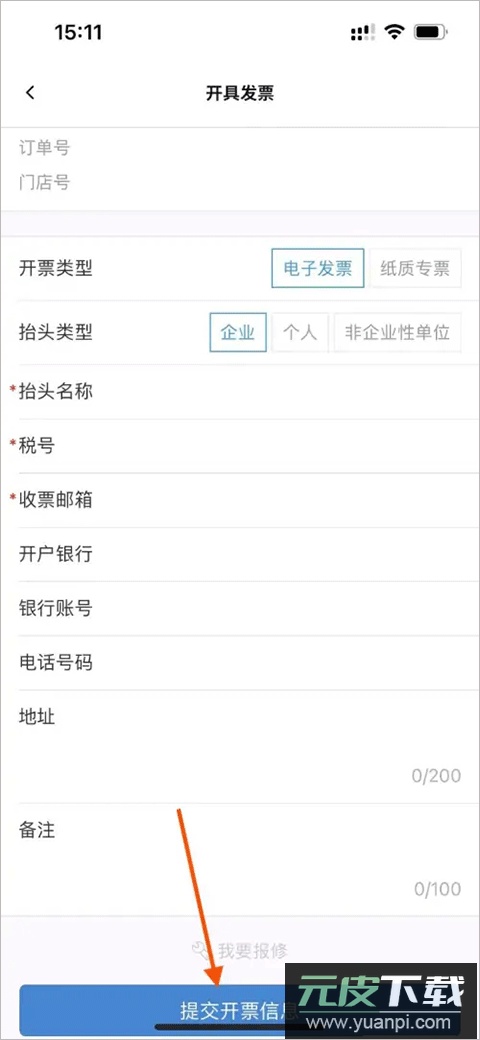 3、在开票界面填写发票抬头、纳税人识别号等相关资料,确认后提交即可完成申请。