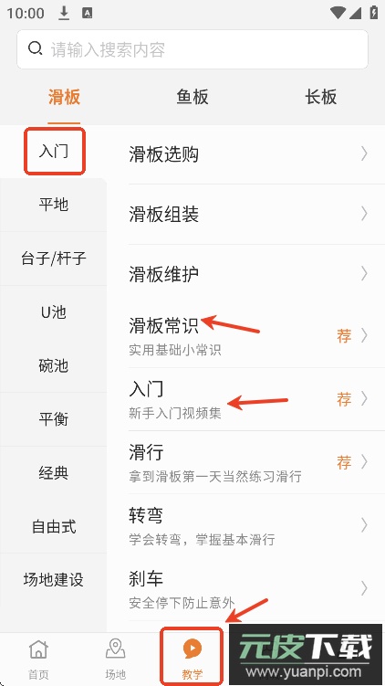 2. 随后用户可以在教学页面学习一些入门滑板课程。