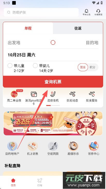 2、进入首页后,您可以根据个人需求查询所需机票。