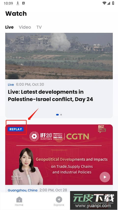 1、在播放页面找到左上角带有“REPLAY”标识的直播视频;