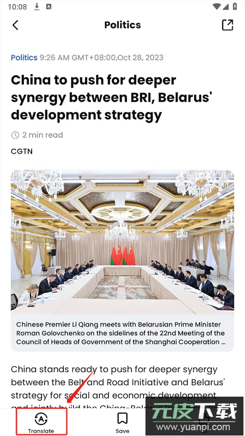 4、或者在阅读文章时直接点击左下角的“翻译”按钮快速切换语种。