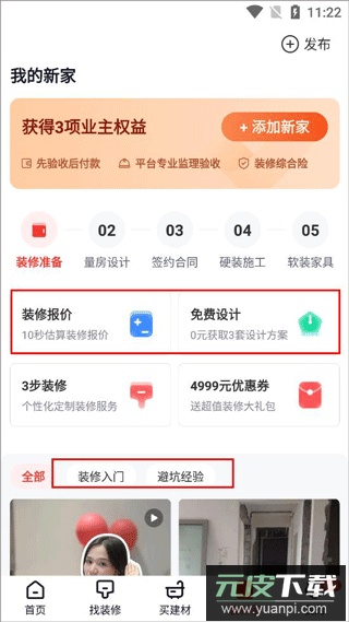 4、进入装新家板块,用户可定制装修方案并学习装修知识;