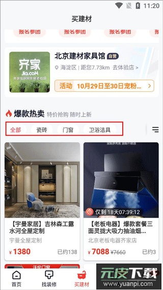 3、打开买建材板块,用户能根据自身需求挑选家居建材;