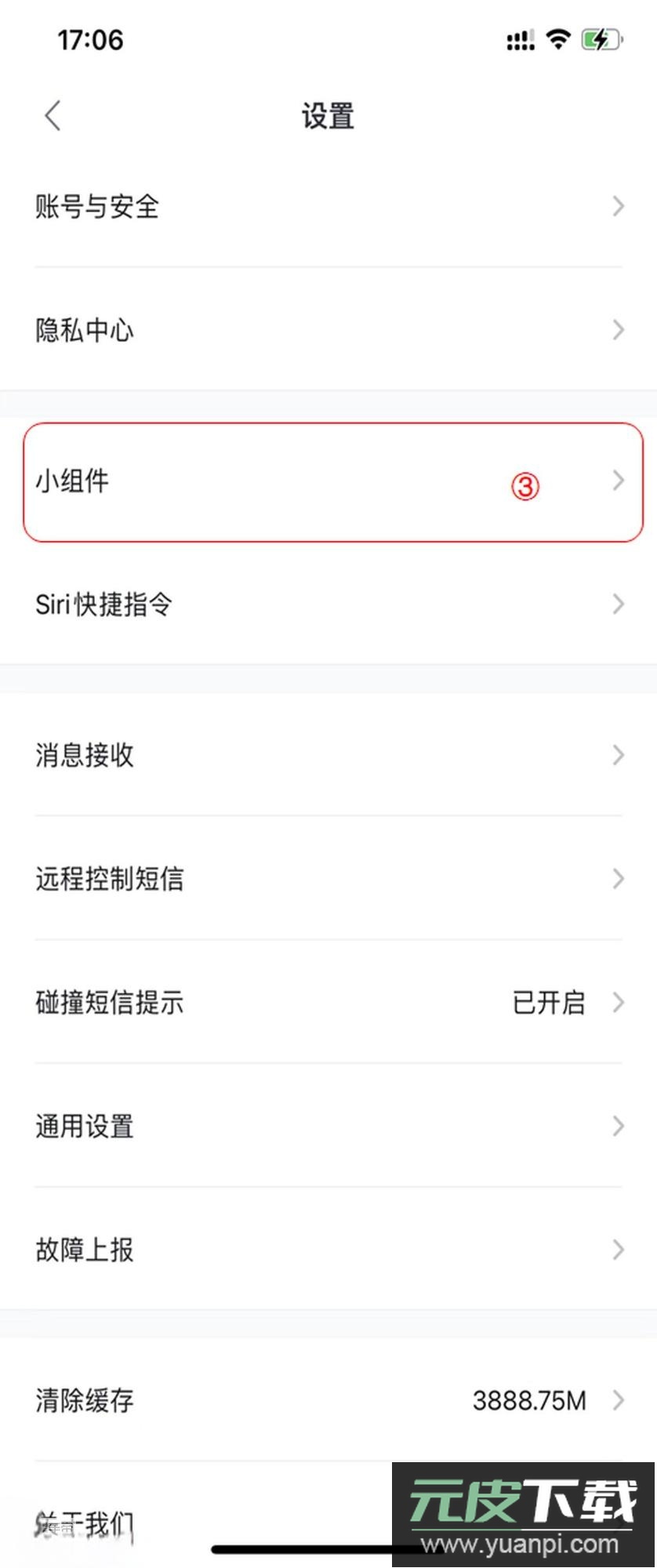 找到第三行“小组件”③,点击右侧箭头>查看详情。