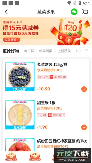 3、例如选择一家超市,即可进入商品主页;这里所列商品与线下门店同步更新,部分区域还可选购高端进口生鲜,并时常享有专属优惠。