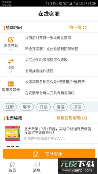 2、【我要开票】 提供消费票与充值票的灵活开具功能。