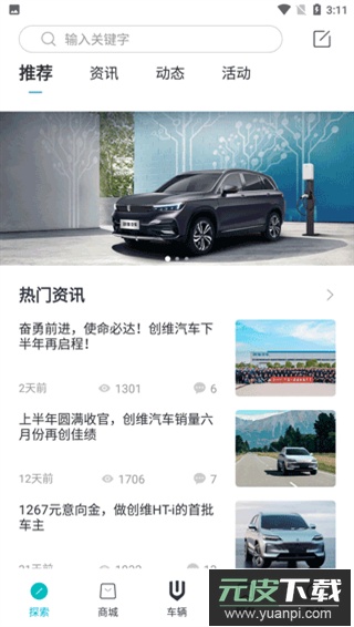 1、点开首页,会出现各种车辆的热门资讯以及活动;