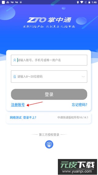 1、安装并打开掌中通app,输入账号信息登录,新用户需先完成注册;