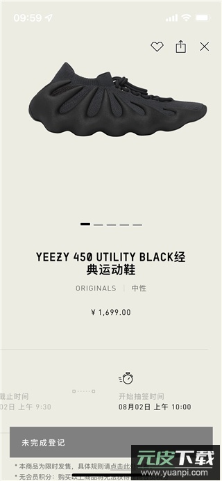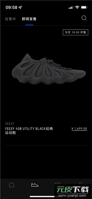 4、在即将发售栏目中,能够找到例如当日10点发售的YEEZY 450 UTILTY BLACK等经典运动鞋。