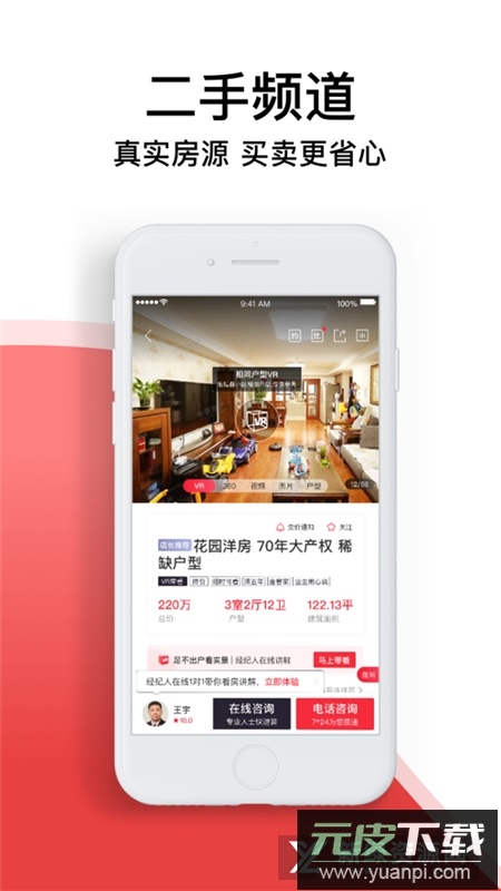支持VR实景看房,所有场景均为真实采集,能给用户带来身临其境的看房体验,有效缩短找房周期;