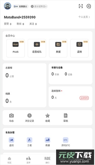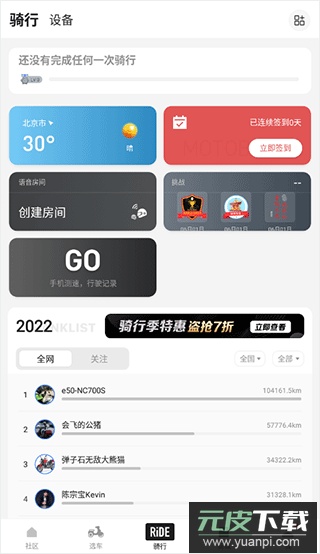软件还提供骑行轨迹记录、组队对讲、线上挑战赛以及二手车选购等多种实用服务。