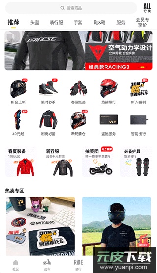 4、商城区域销售骑行服、头盔等常用装备。
