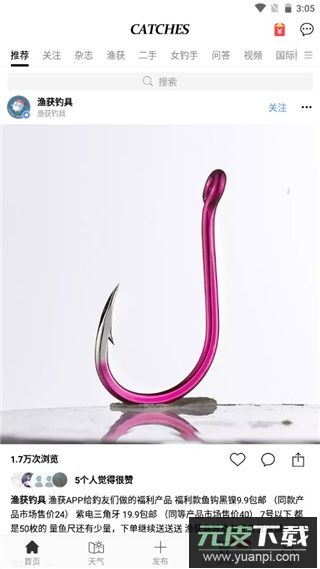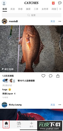 1、首页:呈现用户发布的动态内容,形成社交展示平台,可浏览丰富垂钓相关帖子;