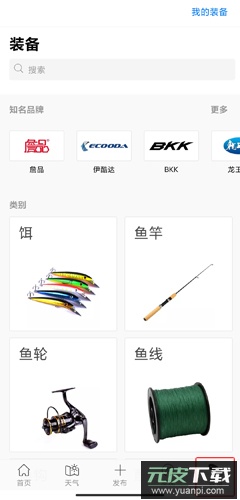 5、装备页:集中展示各类品牌的钓鱼装备,包括饵料、鱼竿、鱼轮、鱼线鱼钩等产品。
