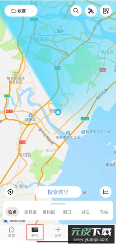 2、天气页:查看钓鱼地点的天气变化,并提供附近港口、湖泊、岛屿等位置信息;