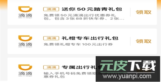 2、领取滴滴打车优惠券,获取踏青礼包,让出行更省心、更经济。