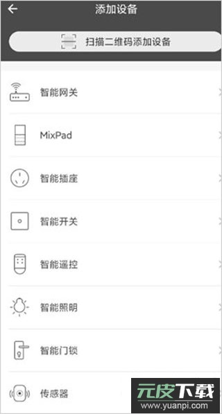 2、也可点击界面右上角的“+”图标,从列表中选择需要添加的设备类型。
